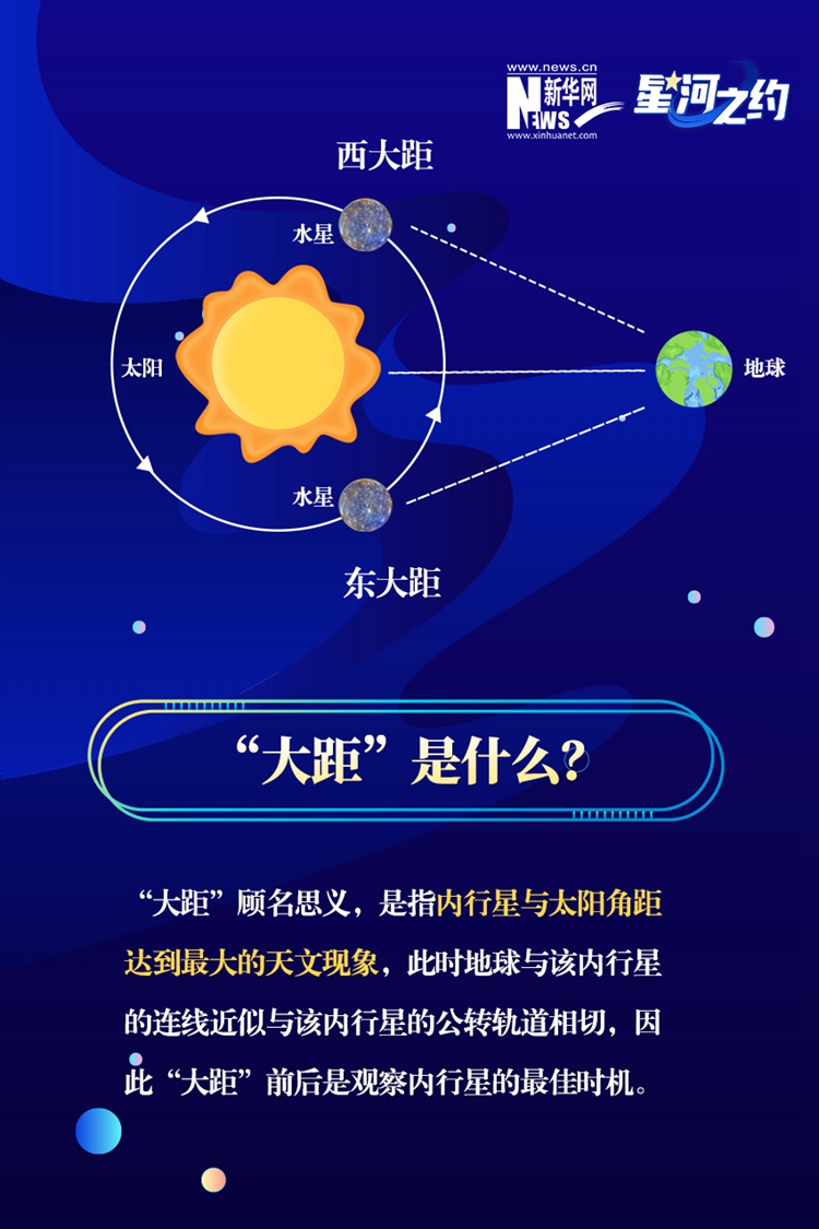 當它與太陽(yáng)的角距離達到最大值(即大距)前后時(shí)