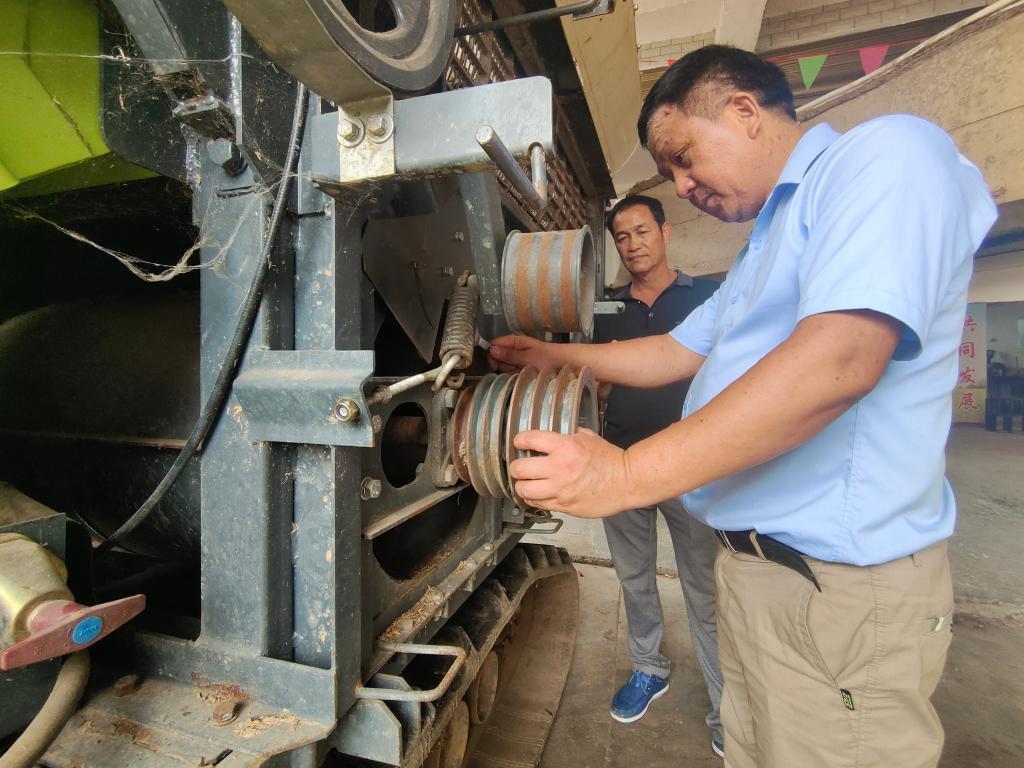 在湖南省益陽(yáng)市佳澤富農業(yè)機械服務(wù)有限公司,公司負責人周碧云的工作強度逐漸增大。廠(chǎng)房?jì)?,他正幫助種糧大戶(hù)趙舜良調整收割機的風(fēng)機系統和脫粒系統。再過(guò)一個(gè)多月,這里早稻就要收獲了。周碧云告訴記者,預計整個(gè)6月,他們要調試的收割機將超過(guò)200臺。