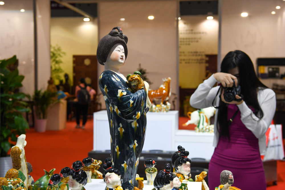 6月8日,觀(guān)眾在文博會(huì )上拍攝“唐三彩”擺件。新華社記者 梁旭 攝
