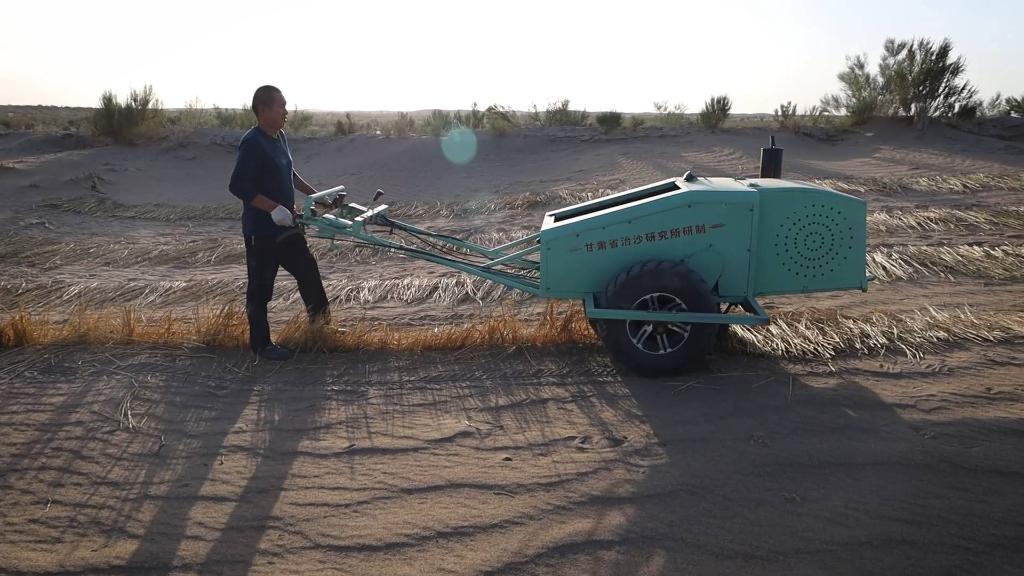 甘肅省治沙研究所科研團隊扎根隴原,努力探尋科學(xué)防沙治沙的辦法。建立觀(guān)測研究站、研制手扶式沙障機、開(kāi)展野外調試作業(yè)……在甘肅,科學(xué)精準的治沙理念不僅提高了治沙效率,還降低了治沙成本,讓沙化土地防治的可持續性顯著(zhù)增強。