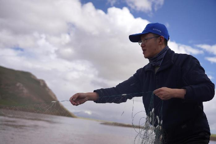 7月26日,劉晗在長(cháng)江源區河流采集魚(yú)類(lèi)樣本。新華社記者 陳杰 攝
