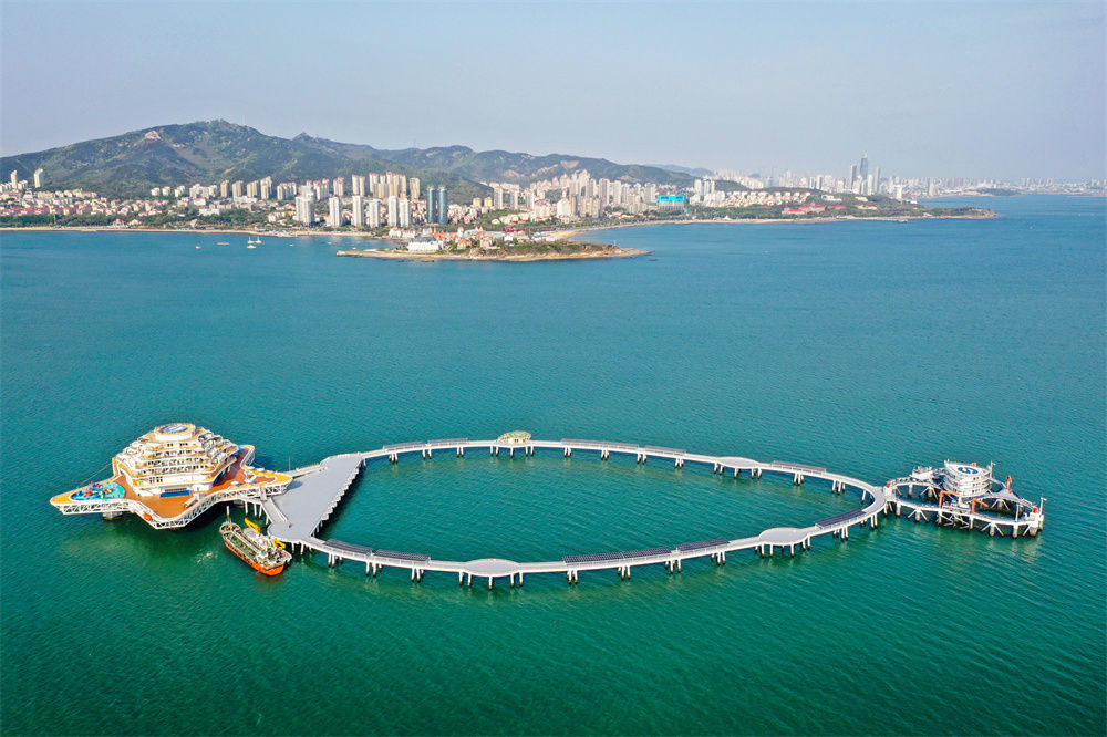 迎著(zhù)夏日海風(fēng),記者乘船登上這塊深?!皩毷?。這是融合海洋漁業(yè)、海工裝備、海洋文旅、科普教育、影視娛樂(lè )等功能于一體的“海上綜合體”。河北游客陳家棟海上垂釣之后,還參觀(guān)了海洋科普館,體驗深海電梯。他說(shuō):“這里的項目特色鮮明,比城里的綜合體更有趣?!?/p>