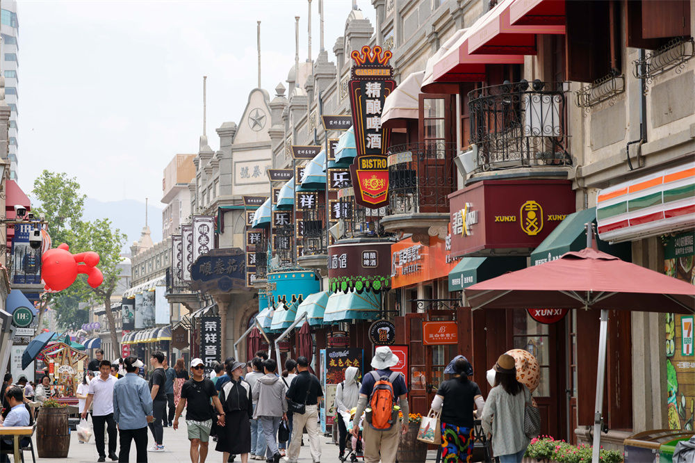 游人在煙臺市朝陽(yáng)街游玩(2023年6月12日攝)。新華社記者 朱崢 攝
