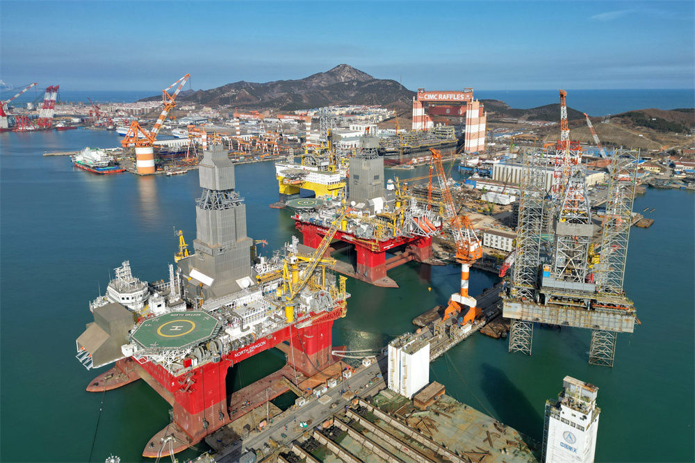 鳥(niǎo)瞰中集來(lái)福士山東煙臺建造基地(2023年2月7日攝,無(wú)人機照片)。新華社發(fā)(唐克 攝)