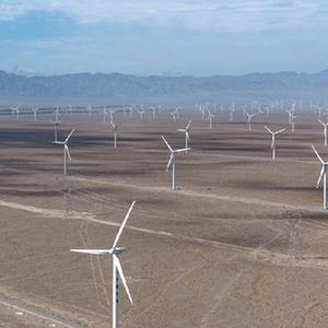 在玉門(mén)市西南的戈壁灘上,有一大片白色的“風(fēng)電森林”,這就是素有“陸上三峽”之稱(chēng)的酒泉千萬(wàn)千瓦級風(fēng)電基地。