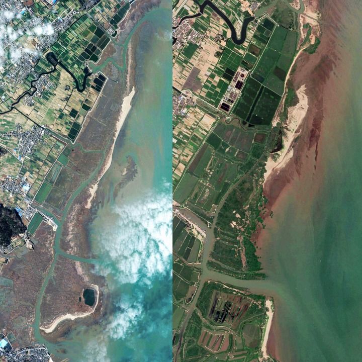 在福建閩江河口濕地國家級自然保護區管理處,工作人員向記者演示衛星遙感照片,多年來(lái)閩江河口濕地“人退地進(jìn)”清晰可見(jiàn):本世紀初,遍布養殖場(chǎng)和魚(yú)塘的畫(huà)面呈現大片的黑色,如今綠色連片成面,與藍色海洋形成美麗畫(huà)卷。