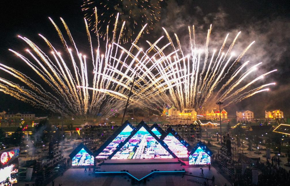 第四篇章“十年蝶變”以運動(dòng)表演秀點(diǎn)燃全場(chǎng)激情。晚會(huì )從遠古走來(lái),走到燈火爛漫的現代阿爾山,彩色的焰火為“四季都很美”的阿爾山繪寫(xiě)出美好藍圖,漫天煙花映照出觀(guān)眾的喜悅臉龐。