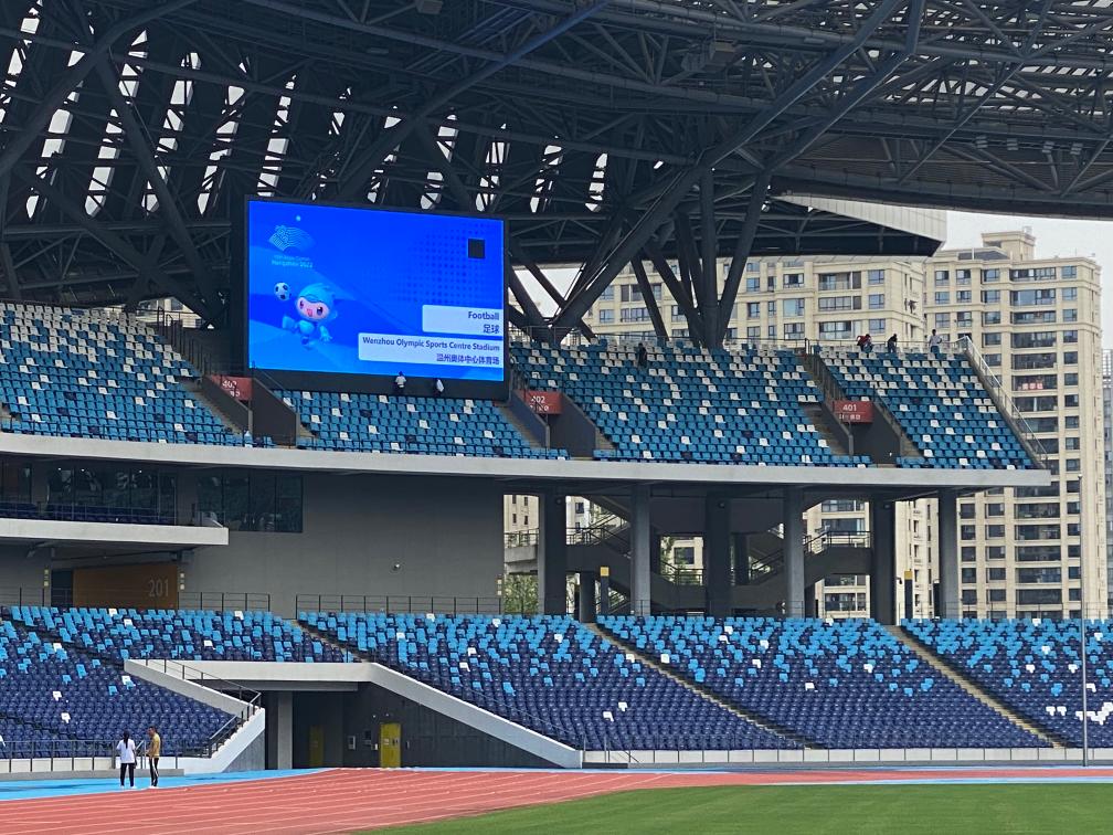 從位于溫州主城區西部的甌海區向東行,來(lái)到溫州體育中心體育場(chǎng)。該體育場(chǎng)建成已有十余年,當地對場(chǎng)地設施設備進(jìn)行了提升改造,以符合亞運賽事要求。一些提升運動(dòng)員參賽和觀(guān)眾觀(guān)賽體驗的“黑科技”就蘊含在場(chǎng)地改造的細節里。