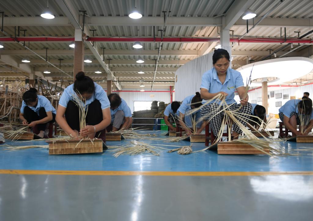 憑著(zhù)做一把扇子也要精益求精的堅持,陳良順經(jīng)手的藤編產(chǎn)品重新成為當地風(fēng)靡的物件,外地訂單數也不斷走高。2007年,他的家庭工坊升級為專(zhuān)業(yè)合作社和公司,成為當地藤編行業(yè)的排頭兵。如今,公司從業(yè)人員已有近兩千人,帶動(dòng)了周邊村鎮200多名婦女、老人以及殘疾人等弱勞力的就業(yè)。