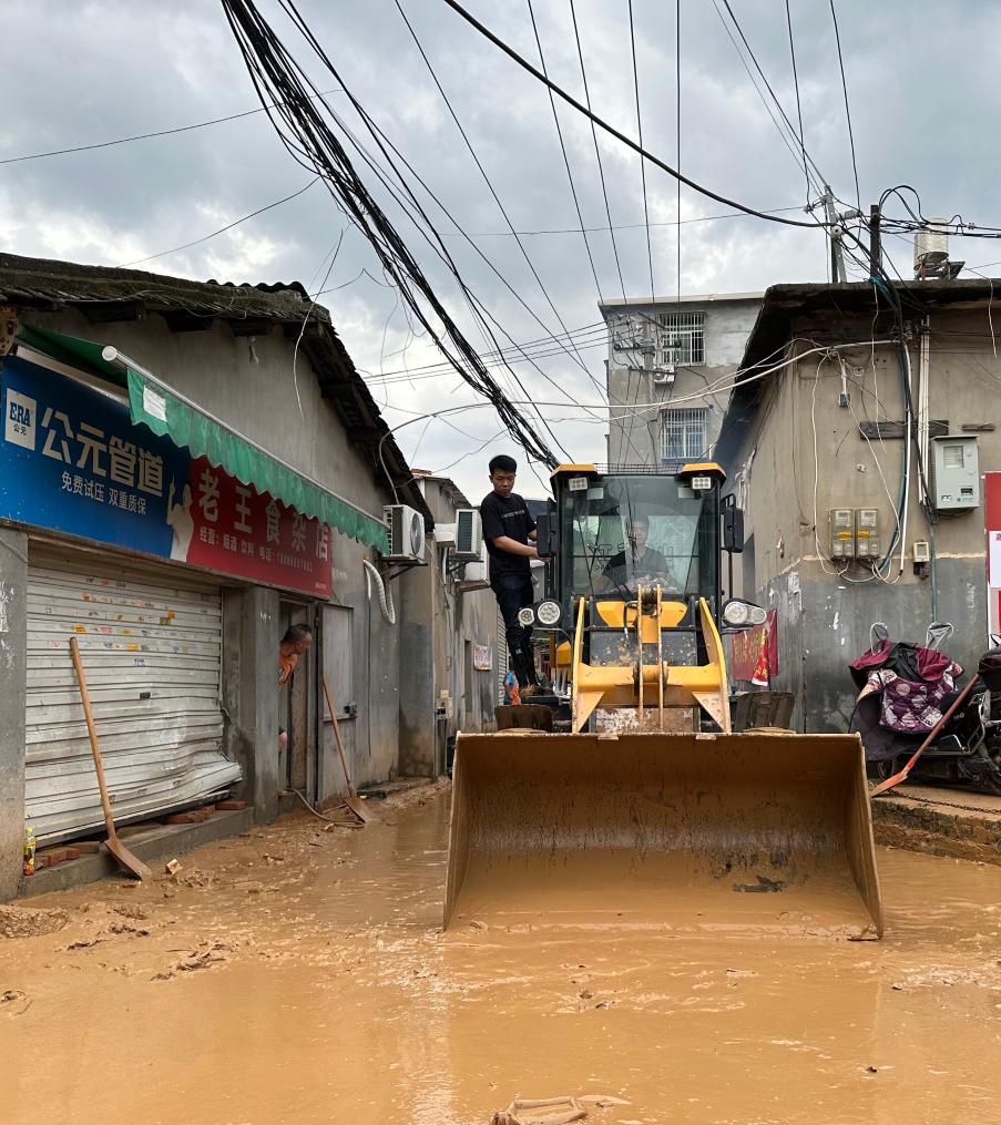 7日上午7時(shí),為盡快疏通淤積道路,村干部、志愿者們再次投入清掃村道的工作中,并出動(dòng)多輛鏟車(chē)配合清淤作業(yè)。多名村干部從汛情發(fā)生以來(lái),一直守在村里,他們繼續幫村民清理房前屋后,指揮鏟車(chē)在主干道安全作業(yè)。