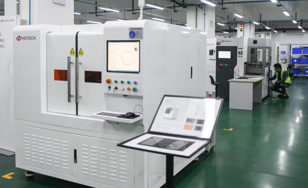 武漢華工激光工程有限責任公司員工在生產(chǎn)車(chē)間工作(3月17日攝)。新華社記者 程敏 攝