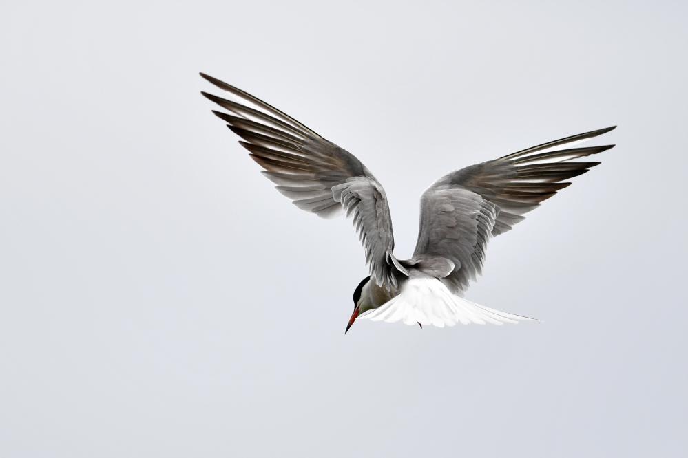 一只燕鷗在甘肅尕海則岔國家級自然保護區的尕海濕地上飛翔。 新華社記者 陳斌 攝