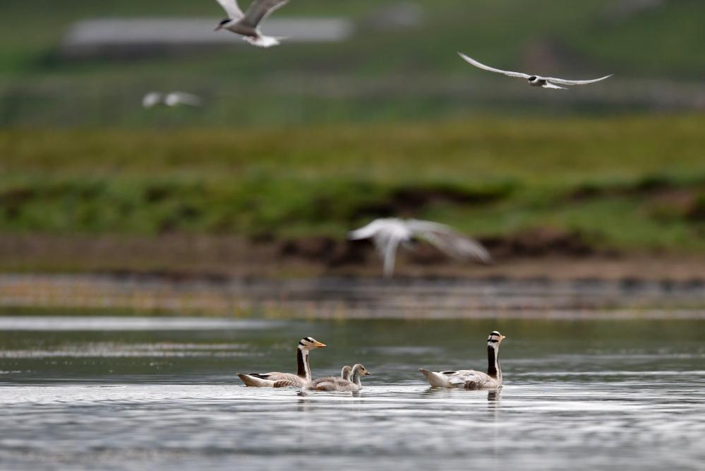這是在甘肅尕海則岔國家級自然保護區的尕海濕地上拍攝的斑頭雁。 新華社記者 張可任 攝
