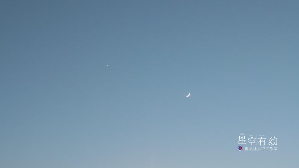 天津市天文攝影愛(ài)好者馬強2023年6月21日在天津拍攝的金星伴月。(本人供圖)
