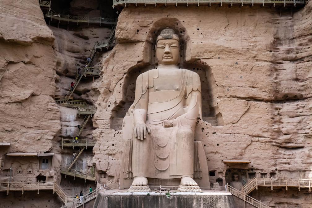 這是9月21日拍攝的炳靈寺石窟第171龕唐代石胎泥塑大佛。新華社記者 郎兵兵 攝