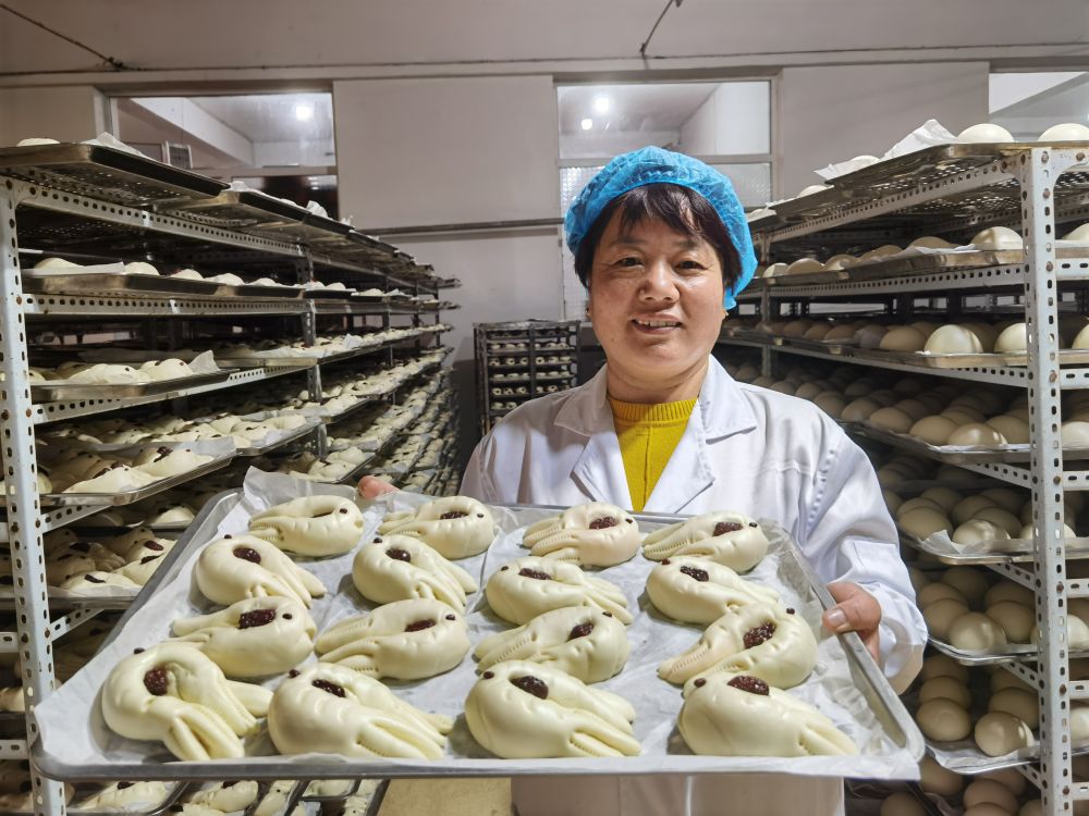 閆玉龍開(kāi)年饃廠(chǎng)12年來(lái),銷(xiāo)售一年比一年紅火。每逢過(guò)年,他的年饃廠(chǎng)就格外忙碌。能干的師傅甚至一手揉一個(gè)饅頭,每天能掙100至300多元。