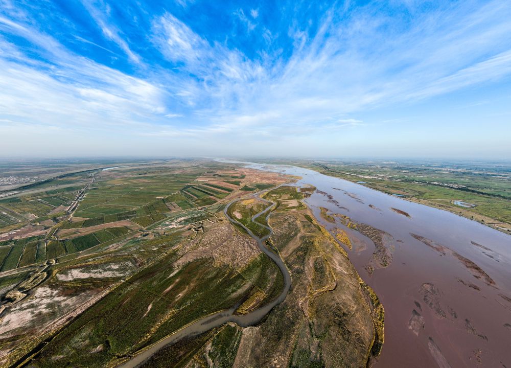 黃河從內蒙古巴彥淖爾市臨河區雙河鎮流過(guò)(無(wú)人機照片,2023年9月15日攝)。新華社記者 邢廣利 攝