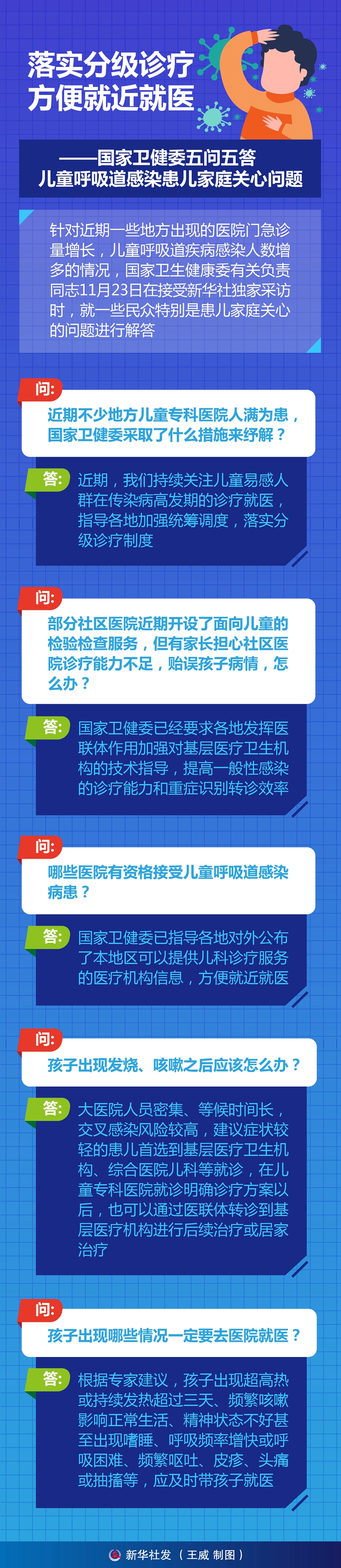 答:近期,我們持續關(guān)注兒童易感人群在傳染病高發(fā)期的診療就醫,指導各地加強統籌調度,落實(shí)分級診療制度。