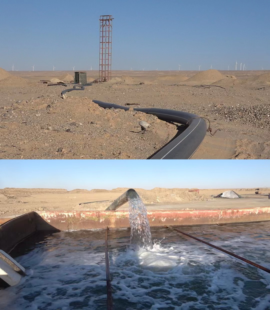 格爾木鹽化(集團)公司委托青海黃河實(shí)業(yè)集團建安公司經(jīng)營(yíng)氯化鉀項目,后者私自在都蘭縣沙漠地區打井抽取地下水。(督察組供圖)