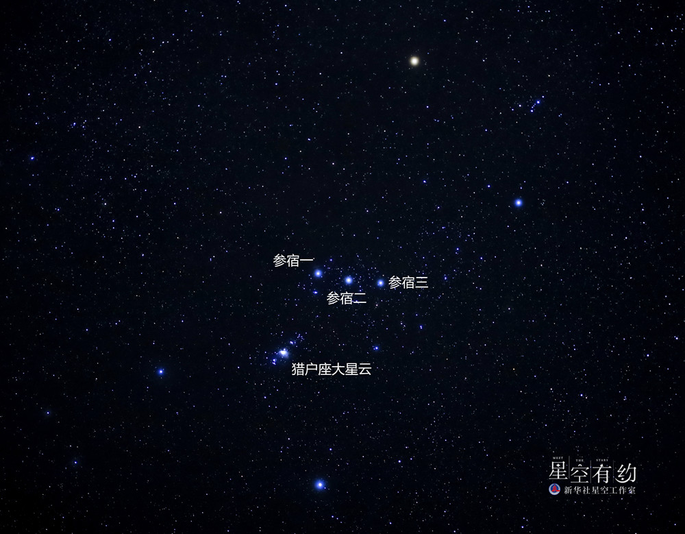 這個(gè)冬季夜空的“霸主”主要由參宿一到參宿七這7顆恒星組成。其中,有三顆星恰好在獵戶(hù)座的“腰部”,均勻地排成一條線(xiàn),就像獵戶(hù)座的“腰帶”,這就是著(zhù)名的獵戶(hù)三星——參宿一、參宿二和參宿三。