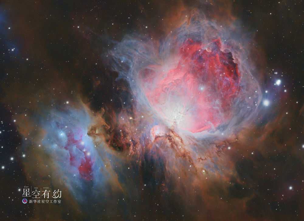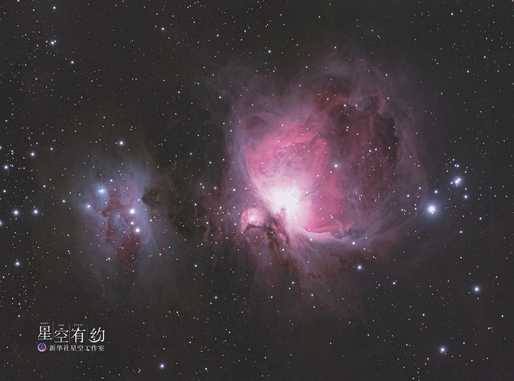新華社天津12月17日電(記者周潤?。┇C戶(hù)座是北半球冬夜最閃耀奪目的星座之一,其中不僅有大名鼎鼎的獵戶(hù)三星,還有赫赫有名的獵戶(hù)座大星云,它是夜空中最亮的星云之一,既像一束散發(fā)出粉紅色光芒的花朵,又似一只燃燒的火鳥(niǎo),非常美麗。