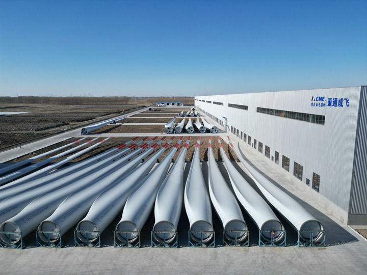 一批批風(fēng)機裝備制造產(chǎn)業(yè)落戶(hù)東北。在中國一重龍申(齊齊哈爾)復合材料有限公司葉片制造園區,工人們正在生產(chǎn)風(fēng)電葉片?!皬?021年4月啟動(dòng)建設園區,到2022年5月第一支76米葉片下線(xiàn),到正在生產(chǎn)中的98米葉片模具,旺盛需求推著(zhù)我們加緊研發(fā)、突破瓶頸、全速前進(jìn)?!惫究偨?jīng)理徐戈說(shuō)。
