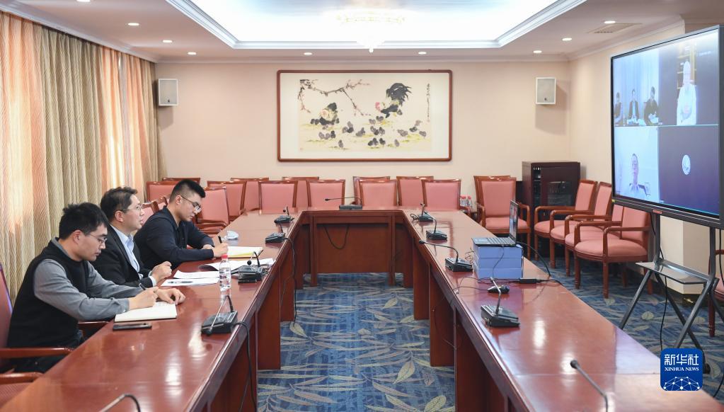 3月8日,科技部成果轉化與區域創(chuàng )新司二級巡視員陳宏生(左二)和他的兩位同事在科技部與全國政協(xié)委員隆克平等視頻連線(xiàn)。新華社記者 戴天放 攝