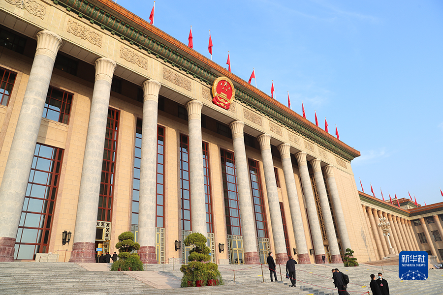 10日上午9時(shí),十四屆全國人大一次會(huì )議在人民大會(huì )堂舉行第三次全體會(huì )議。圖為人民大會(huì )堂外景。(新華網(wǎng)記者 焦鵬 攝)