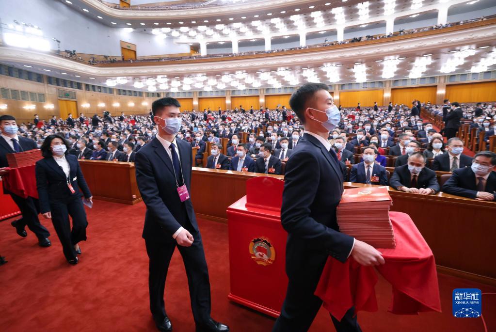 3月10日,全國政協(xié)十四屆一次會(huì )議在北京人民大會(huì )堂舉行第三次全體會(huì )議。這是工作人員準備發(fā)放選票。