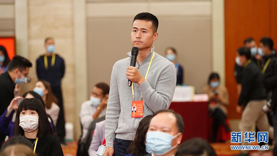 10月17日(星期一)10:00,二十大新聞中心在梅地亞新聞中心二層新聞發(fā)布廳舉辦第一場(chǎng)記者招待會(huì )。這是記者在分會(huì )場(chǎng)提問(wèn)。(新華網(wǎng) 陳杰 攝)
