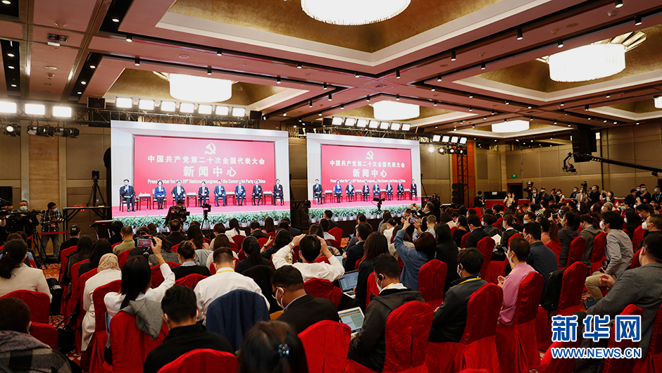 10月18日(星期二)19:30,二十大新聞中心在梅地亞新聞中心二層新聞發(fā)布廳舉辦第二場(chǎng)集體采訪(fǎng)。圖為集體采訪(fǎng)分會(huì )場(chǎng)。(新華網(wǎng) 陳杰 攝)