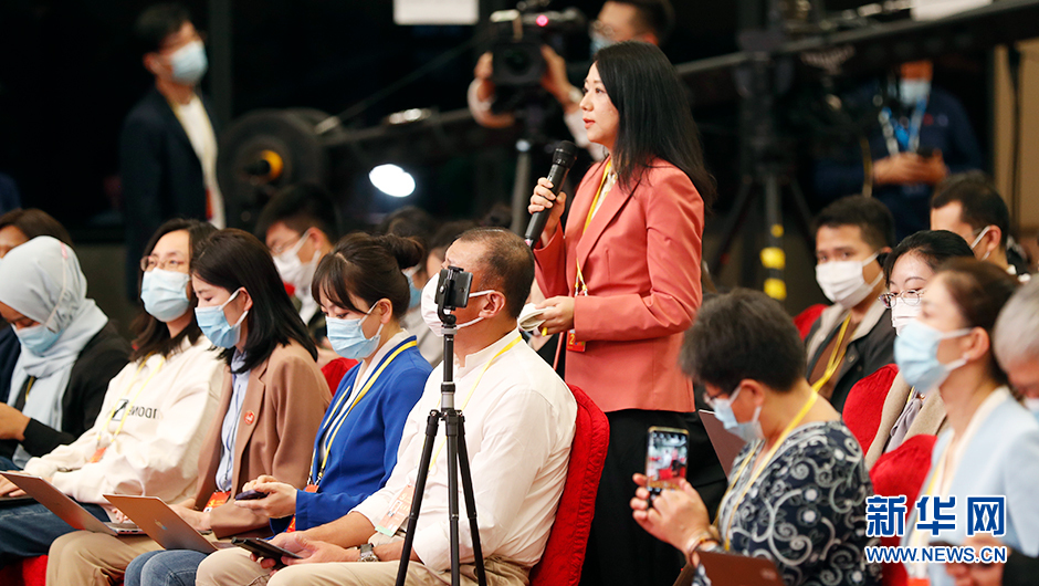 10月20日(星期四)19:30,二十大新聞中心在梅地亞新聞中心二層新聞發(fā)布廳舉辦第五場(chǎng)集體采訪(fǎng)。圖為中央廣播電視總臺記者在分會(huì )場(chǎng)提問(wèn)。(新華網(wǎng) 陳杰 攝)