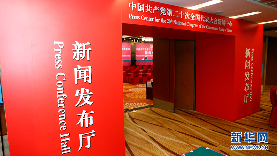 10月21日(星期五)10:00,二十大新聞中心將舉辦第五場(chǎng)記者招待會(huì )。圖為記者招待會(huì )前分會(huì )場(chǎng)。(新華網(wǎng) 陳杰 攝)