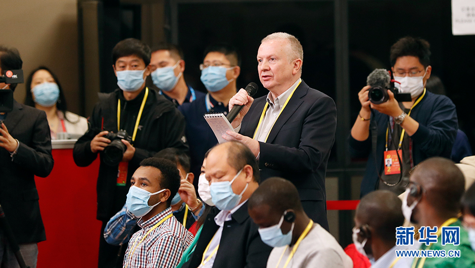 10月21日(星期五)10:00,二十大新聞中心舉辦第五場(chǎng)記者招待會(huì )。圖為彭博新聞社記者在分會(huì )場(chǎng)提問(wèn)。(新華網(wǎng) 陳杰 攝)