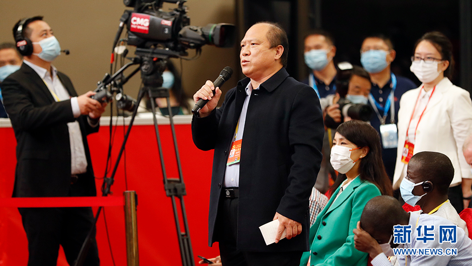 10月21日(星期五)10:00,二十大新聞中心舉辦第五場(chǎng)記者招待會(huì )。圖為香港紫荊雜志社記者在分會(huì )場(chǎng)提問(wèn)。(新華網(wǎng) 陳杰 攝)