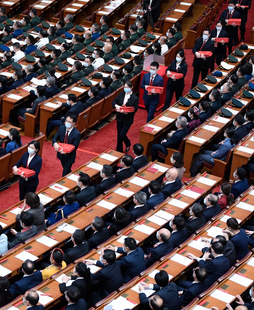 10月22日,中國共產(chǎn)黨第二十次全國代表大會(huì )閉幕會(huì )在北京人民大會(huì )堂舉行。這是工作人員在發(fā)選票。