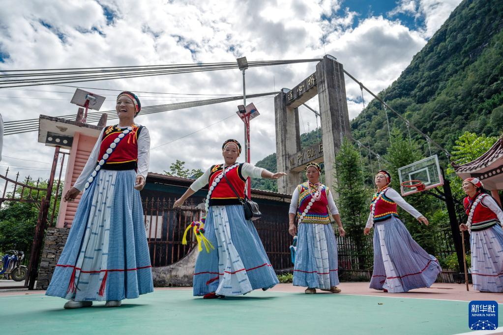 云南省怒江州福貢縣石月亮鄉拉瑪底村村民自發(fā)組成的“奮進(jìn)合唱團”在村委會(huì )排練節目(2022年9月14日攝)。2020年,怒江州26.96萬(wàn)貧困人口全部脫貧,249個(gè)貧困村全部出列,4個(gè)貧困縣(市)全部摘帽。新華社記者 江文耀 攝
