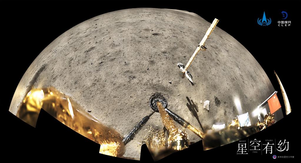 2020年12月4日,國家航天局公布了探月工程嫦娥五號探測器在月球表面展示國旗的照片。 (新華社發(fā) 國家航天局供圖)