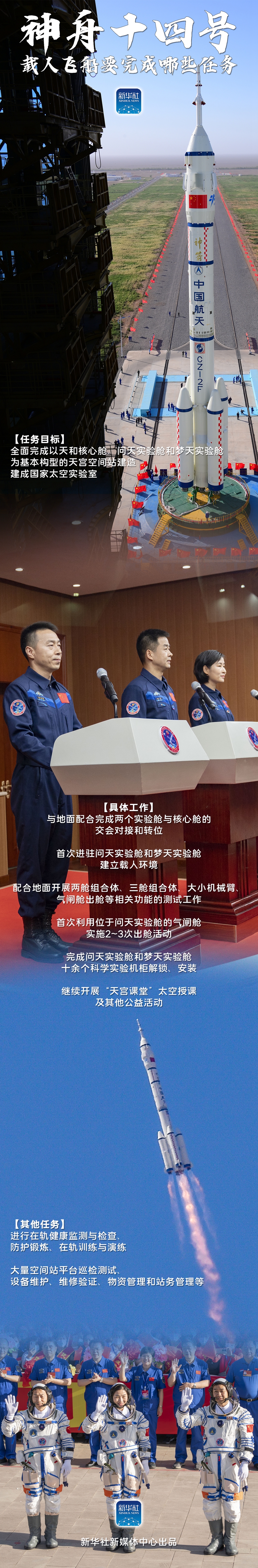 新華社北京6月5日電? 題:“最忙太空出差三人組”出征! 神舟十四號肩負哪些使命?