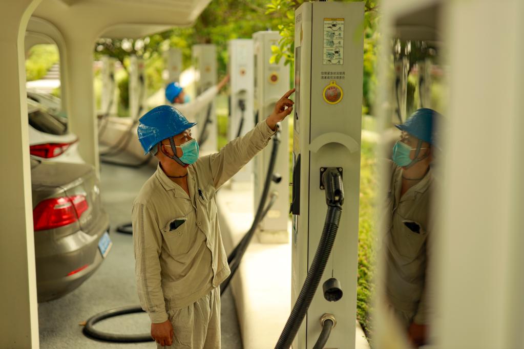 6月16日,供電公司技術(shù)人員在重慶首座光伏充電發(fā)用一體充電站進(jìn)行設備日常安全檢查。新華社記者 劉潺 攝