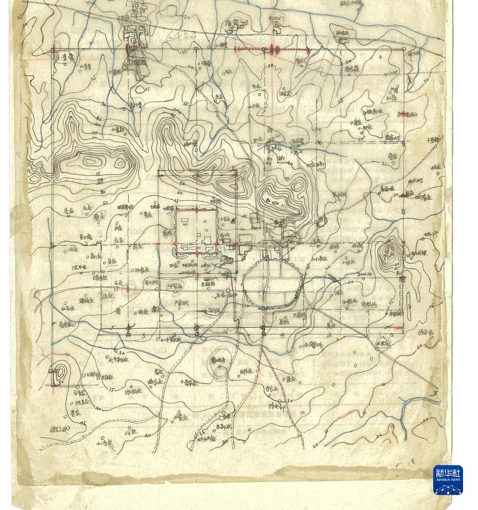 歷史地理學(xué)家王劍英手繪的《明中都遺址示意圖》(資料照片)。新華社發(fā)(鳳陽(yáng)縣博物館供圖)