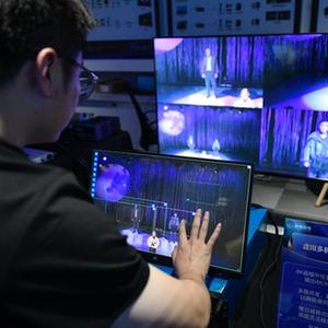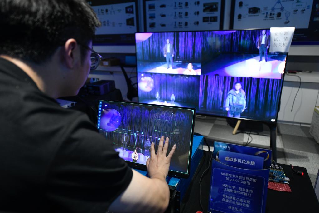 11月11日,工作人員在國家超高清視頻創(chuàng )新中心演示“虛擬多機位系統”。新華社記者 胥冰潔 攝