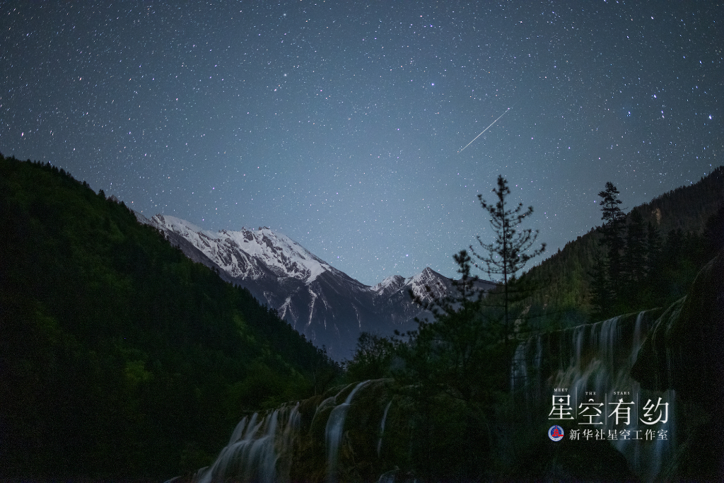 這是重慶市天文攝影愛(ài)好者戴建峰2022年5月5日在四川九寨溝拍攝的寶瓶座η流星雨。(本人供圖)