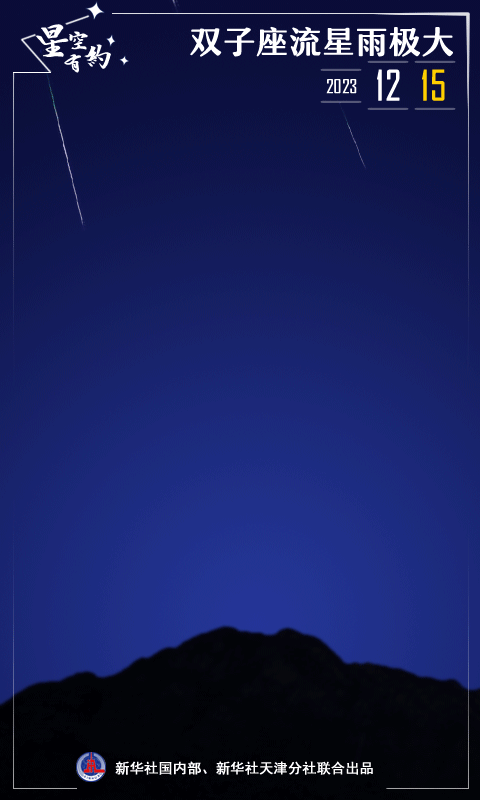 新華社天津12月12日電(記者周潤?。┙衲甓熳詈每吹牧餍怯昙磳㈤W亮登場(chǎng)。天文科普專(zhuān)家介紹,雙子座流星雨將于12月15日凌晨迎來(lái)極大,無(wú)月光影響,喜歡流星雨的公眾可于14日晚至15日晨進(jìn)行觀(guān)測。
