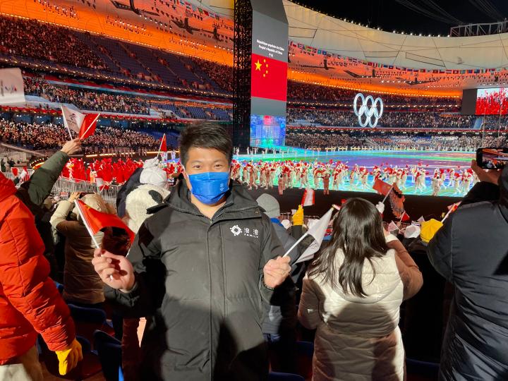 2月4日,臺灣教師陳文成在“鳥(niǎo)巢”觀(guān)看北京冬奧會(huì )開(kāi)幕式。受訪(fǎng)者供圖