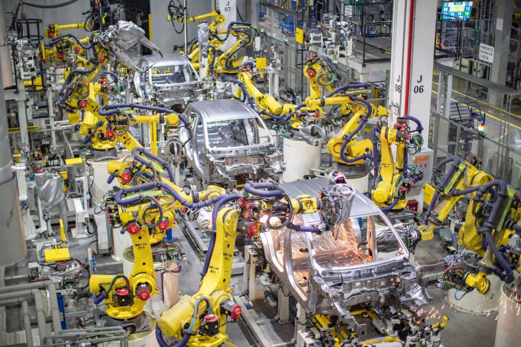地處西部的川渝地區,是近年來(lái)大陸經(jīng)濟高質(zhì)量發(fā)展的重要增長(cháng)極和新動(dòng)力源。圖為重慶一家新能源汽車(chē)企業(yè)使用智能化焊接機器人進(jìn)行焊接作業(yè)(2021年4月2日攝)。新華社記者 黃偉 攝