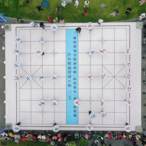 中華文化是兩岸同胞心靈的根脈和歸屬。圖為兩岸青少年傳承象棋文化,促進(jìn)交流(2022年6月12日攝,無(wú)人機照片)。新華社記者 林善傳 攝