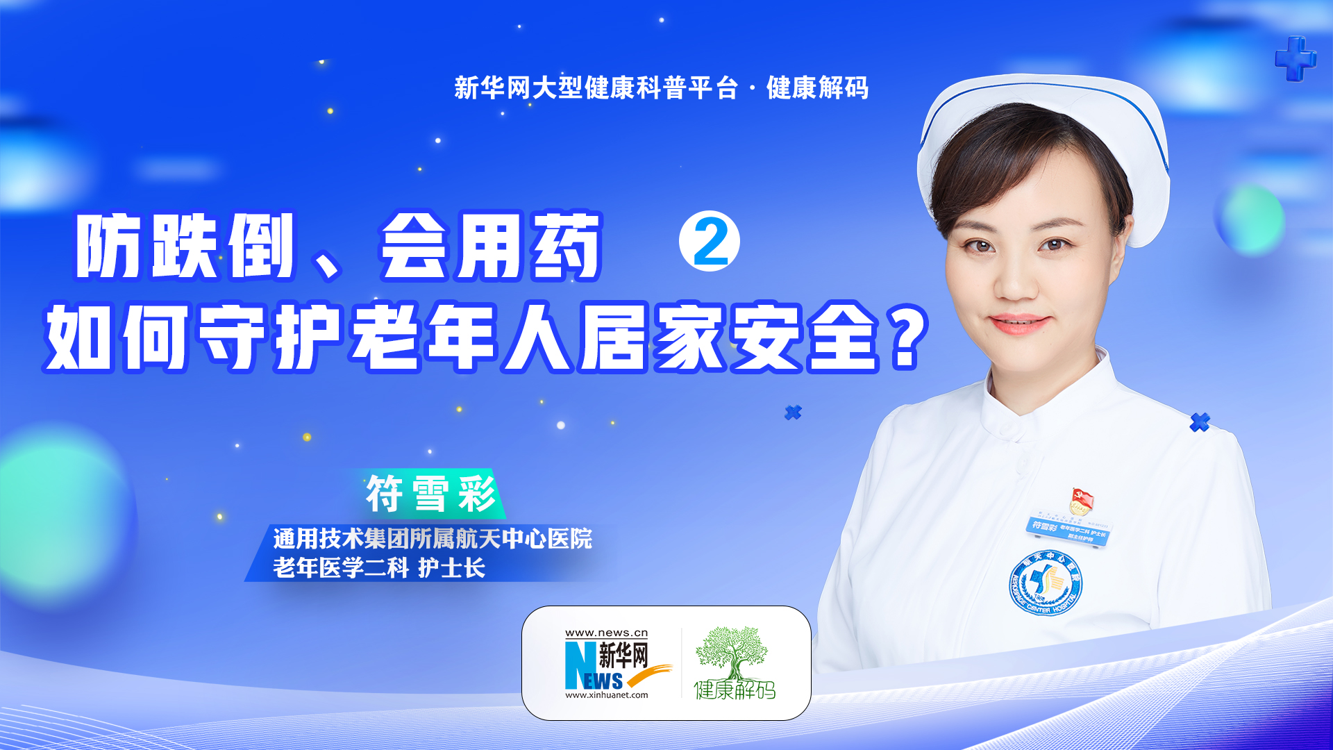 "??本集我們邀請了通用技術(shù)集團所屬航天中心醫院老年醫學(xué)二科護士長(cháng)、主任護師符雪彩分享《防跌倒、會(huì )用藥 如何守護老年人居家安全。"