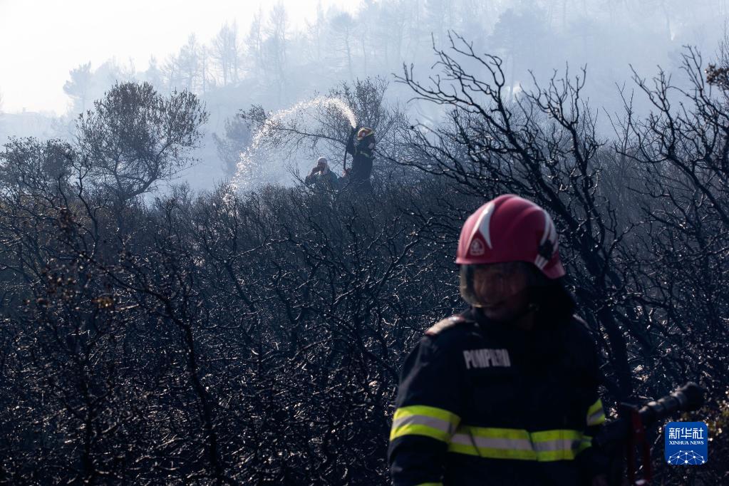 8月23日,消防員在希臘雅典西北的維利亞村進(jìn)行滅火作業(yè)。