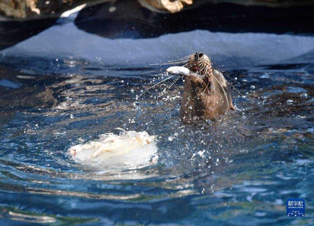 8月26日,一只海獅在意大利羅馬動(dòng)物園享用冰凍食物。